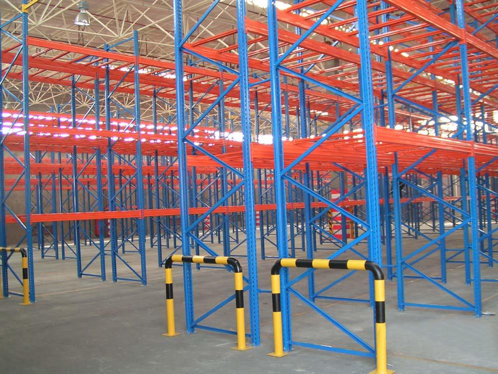 結構:俗稱橫梁式貨架,或稱托盤式貨架。采用組合式結構,依靠橫梁與立柱連接。貨架全為可自由拆裝,可以根據客戶的要求設計,制作各種型號、規格、尺寸的貨架。良好的存貨流轉,活動連接結構合理,承載力強,裝拆快捷,層格變動靈活,組合多變。背靠背雙排貨架之間有連接桿連接,上下75mm為節距自由可調,可配置普通叉車、前移式叉車、三向叉車等各種型號叉車,是最常用的倉儲系統設計方案。另外,還可根據存儲單元集裝設備的特性加裝如:隔檔、鋼層板(木層板)、金屬絲網層、倉儲籠導軌、油桶架等功能性附件。滿足不同單元集裝設備形式的貨物存儲。